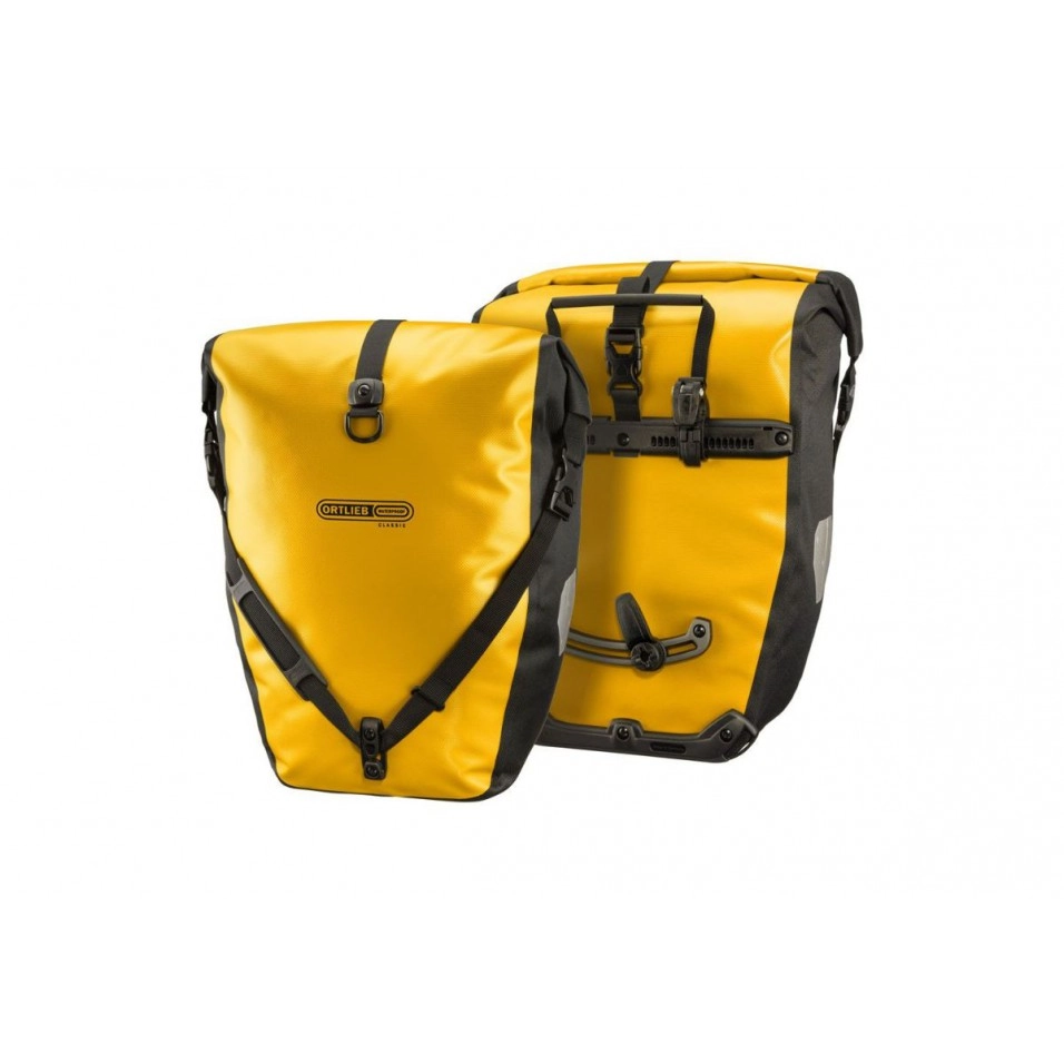 Descubre en Escapa los mejores accesorios de la marca Ortlieb para cargar en tu siguiente aventura. Las alforjas Ortlieb Back-Roller Classic son muy resistentes gracias a su lona de políester. . El sistema de sujeción Quick-Lock2.1 es muy práctico y de este modo se pueden quitar y poner las alforjas fácilmente y cuando llegues a destino te las podrás colgar gracias a la cinta bandolera. Gracias a su material de composición y sistema de cierre son unas alforjar impermeables.