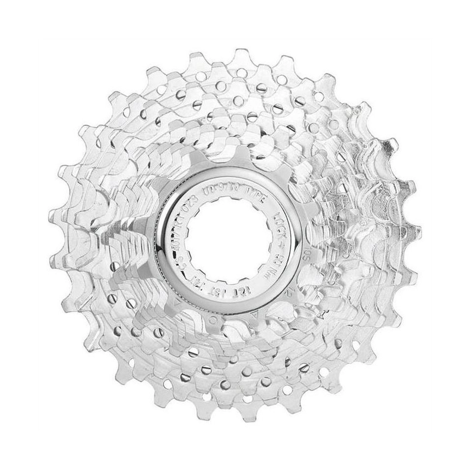 El cassette Campagnolo Veloce 10V permite obtener la máxima rapidez de respuesta al efectuar el cambio. Esto es gracias a que los perfiles de los dientes han sido rediseñados desde cero siguiendo el proyecto Ultra·Drive. _x000D_ _x000D_ Se trata de un cassete de acero con acabado de níquel·cromado para reducir las fricciones entre piñón y cadena y prolongando así la vida de los piñones. El perfil de los dientes, además, está diseñado con geometría Ultra·Drive que facilita el paso de la cadena
